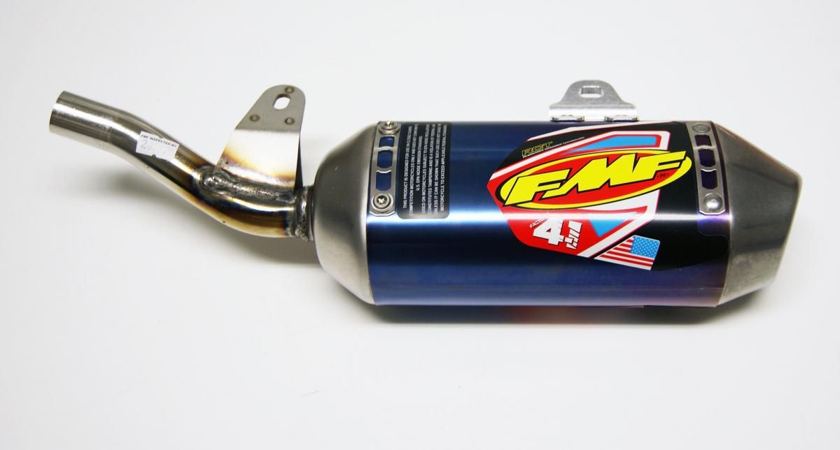 The Factory 4.1 RCT incorporates the latest in FMF Resonance Chamber Technology™ both internally and externally. In addition, we achieve a shorter overall length that is less susceptible to crash damage and complementary to our Factory Forward Engineering – moving the muffler closer to the motor to centralize mass. The Factory 4.1 RCT is constructed from only aerospace-grade materials that meet our exacting specifications and is manufactured 100% at our Southern California factory.
