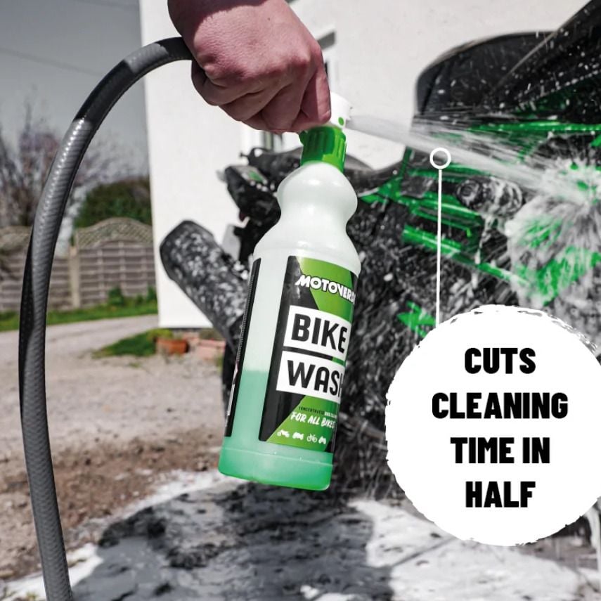 Our Bike Wash Concentrate dilutes 50/50 with water to give you 2L! Bike Wash incorporates a specially chosen blend of fully biodegradable surfactants designed to rapidly clean every part of your bike. Our bike cleaner provides a powerful clean by removing ingrained dirt, mud, grime, sand and clay stains with minimum effort, leaving a streak-free finish whilst being safe on all of your bikes sensitive surfaces. Originally developed for motocross bikes, we know how to clean dirt! Bike Wash can be used on all bikes and bike parts, whether its heavily soiled or just needs a light clean.