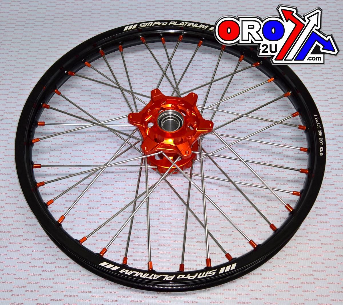 21×1.60 WHEEL KTM BK/ORANGE, GLOSS BLACK RIM, GLOSS ORANGE HUB/GLOSS ORANGE NIPPLES, SP157.06.80.01.06