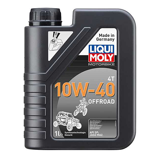 Liqui Moly Motorbike 4T 10W-40 Offroad is a high-performance engine oil formulated with synthetic technology, designed for air- and water-cooled 4-stroke engines operating under extreme off-road conditions. It ensures optimal lubrication, outstanding engine cleanliness, excellent friction characteristics, and minimal wear. This oil is particularly suitable for enduro and motocross motorcycles, quads, side-by-side vehicles, and snowmobiles, with or without wet clutches.