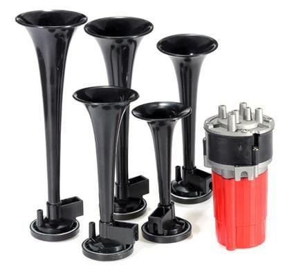 Comes with 5 Black Dixie trumpet 12V air horns