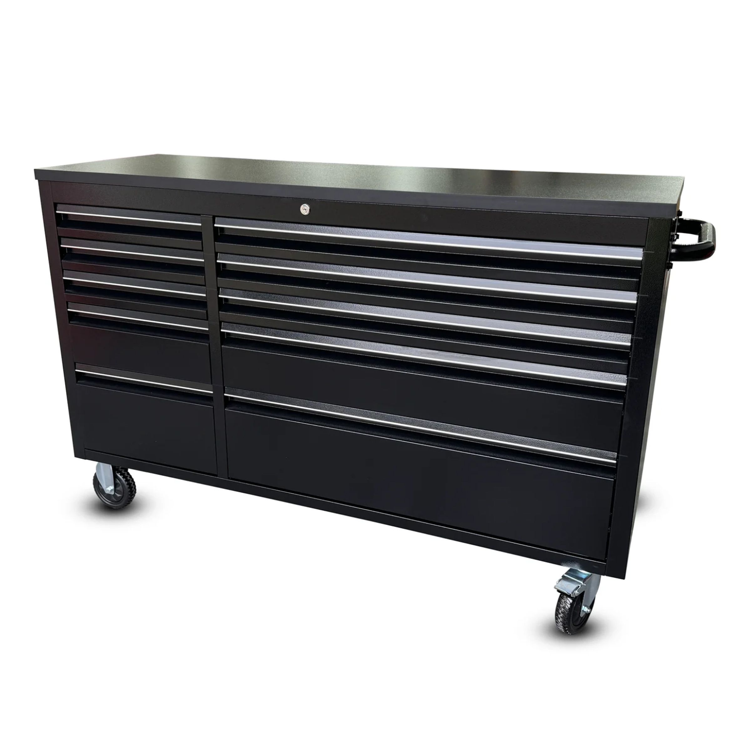 55″ Powder Coated Black Steel Tool Chest Box 10 Drawers Solid Rubber Top