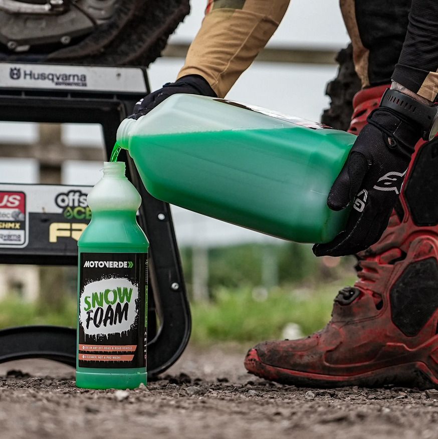 The easiest way to clean your motocross bike, motorcycle, car, van or motorhome! Through a pressure washer our biodegradable explosion of foam will give you a deep clean whilst being gentle on every surface type and finish including aluminium, carbon fibre and anodising. The best part? Our Snow Foam is not a pre-wash!
