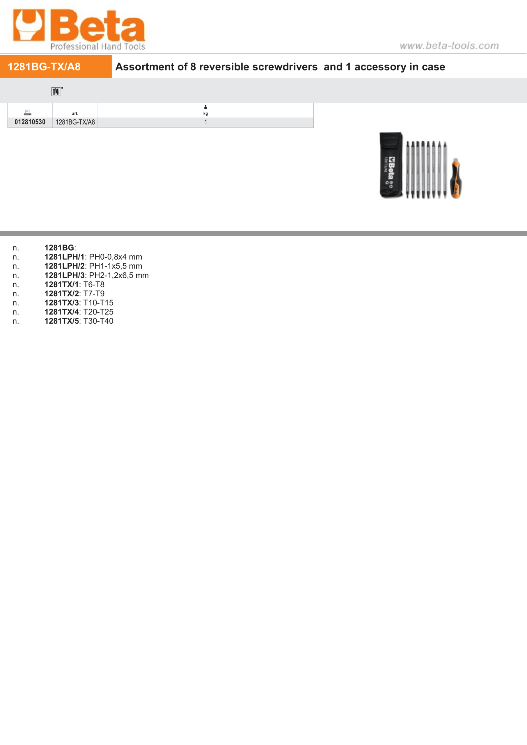 8 Reversible Screwdrivers 1 Accessory in Case – Beta Tools 1281BG-TX/A8