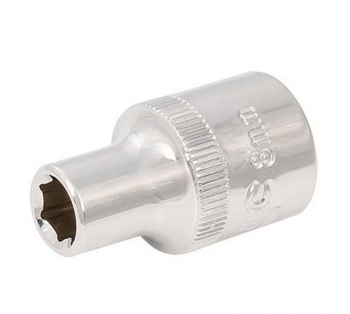 8mm Replacement Socket Manufactured from chrome vanadium steel, hardened, tempered chrome plated and satin finished, chamfered ends for positive nut location and special radius design to give added torque and life expectancy. Sockets have a knurled band for extra hand grip and a hole for positive ball retention. Sockets