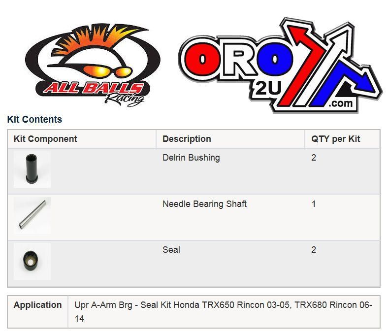 Upper A-Arm Bearing & Seal Kit for Honda: