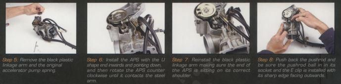 The APS eliminates any wiring tricks that are out there and increases pressure on the pump diaphragm due to its being 50% stiffer then the stock ones Direct replacement for OEM spring Improved throttle response Excellent companion to the ALJ giving you greater range of adjustment No need for any wiring on the accelerator pump Allows use of longer diaphragms