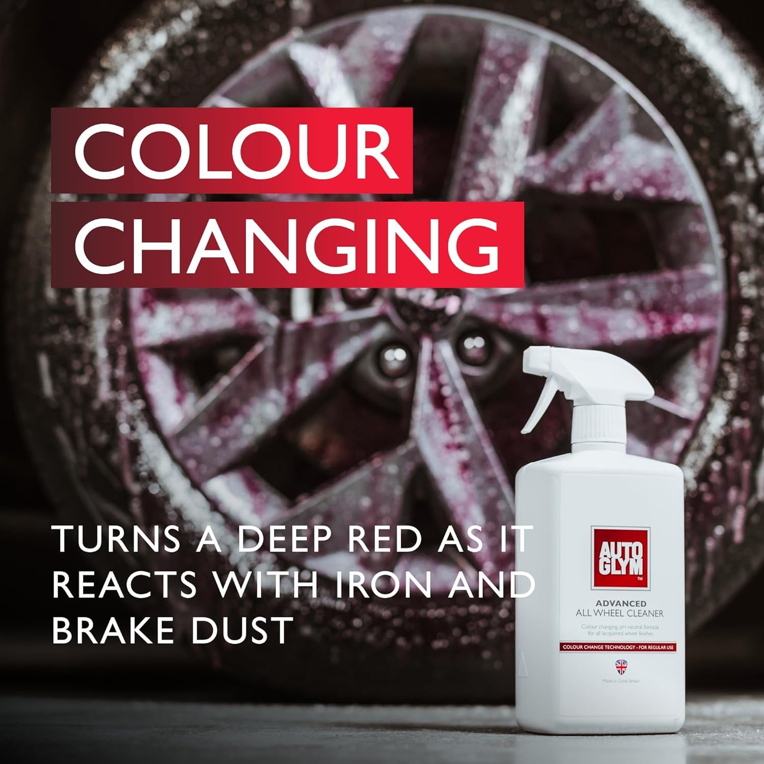 The Autoglym Advanced All Wheel Cleaner is a top-tier wheel cleaning solution designed to effectively eliminate road grime and baked-on brake dust. This product leverages innovative color-changing technology and a high-cling formula for optimal cleaning performance.