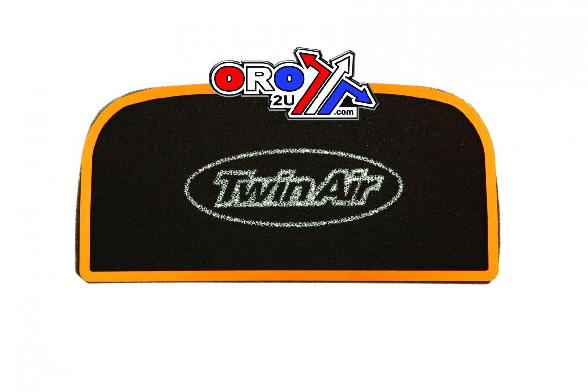The Twin Air Pre Oiled Air Filter has the same treatment that the factory race teams and OEM?s receive, the Twin Air Pre Oiled Air Filter is pre oiled with Biodegradable foam filter oil that provides ultimate consistency in pore coverage. The Twin Air Pre Oiled Air Filter is designed to catch all the dust and debris and allow efficient air flow giving your machine better performance. The Twin Air Pre Oiled Air Filter is pre-oiled for your