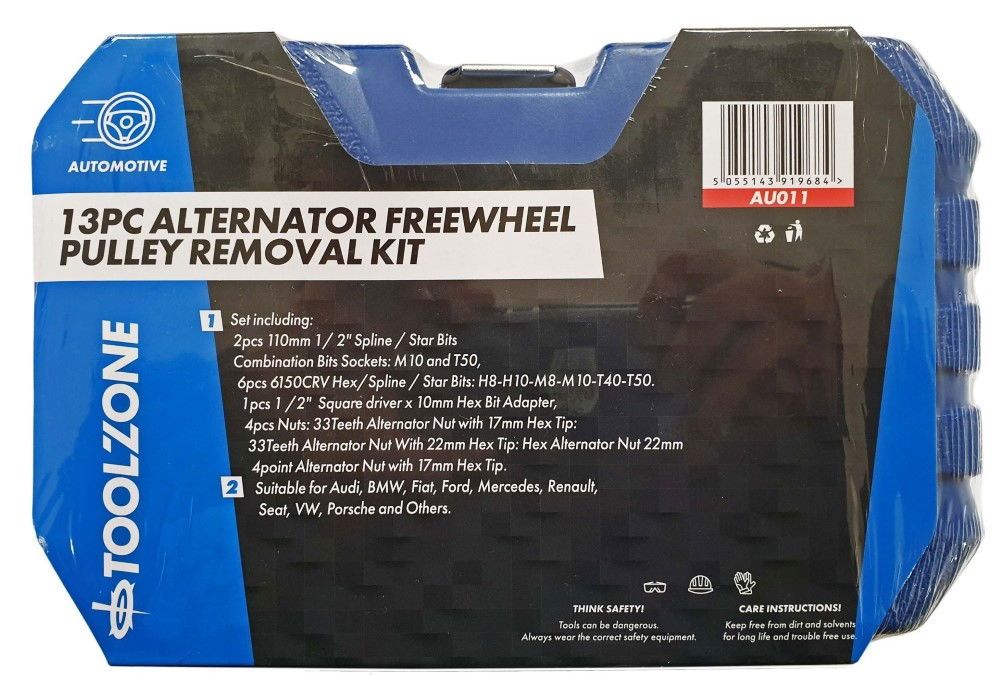 ALTERNATOR FREEWHEEL PULLEY REMOVAL SET 13pc WITH BIT SOCKETS – TOOLZONE KDPAU011