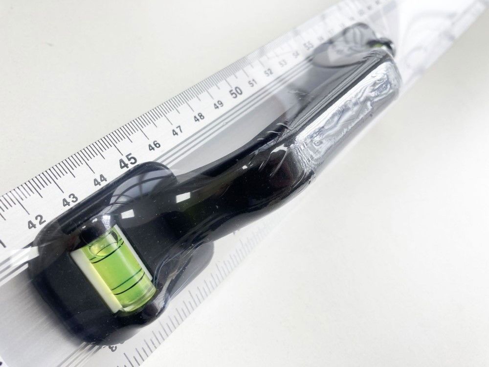 This 40-inch aluminium ruler features a lightweight body, durable plastic handle, and integrated spirit levels for measurement in both directions. It is equipped with both metric and imperial markings for versatility.