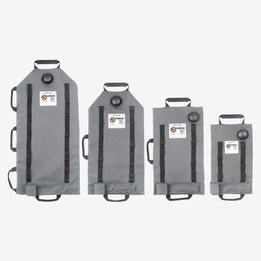 The Giant Loop Armadillo Bag® is a lightweight, collapsible utility bladder designed to temporarily transport and store permitted powersports and automotive fluids—such as gasoline, diesel, kerosene, jet fuel, automotive coolant, and hydrocarbon-based lubricants. It features a two-layer construction with an RF-welded TPU inner bladder and a highly abrasion-resistant Cordura® fabric outer sleeve. Each bag includes an integrated pour spout, daisy-chain webbing for secure mounting, and handles for ease of use. It is not a certified portable fuel container under ASTM, EPA, ARB, or other agencies, and is not intended for long-term fuel storage in the USA