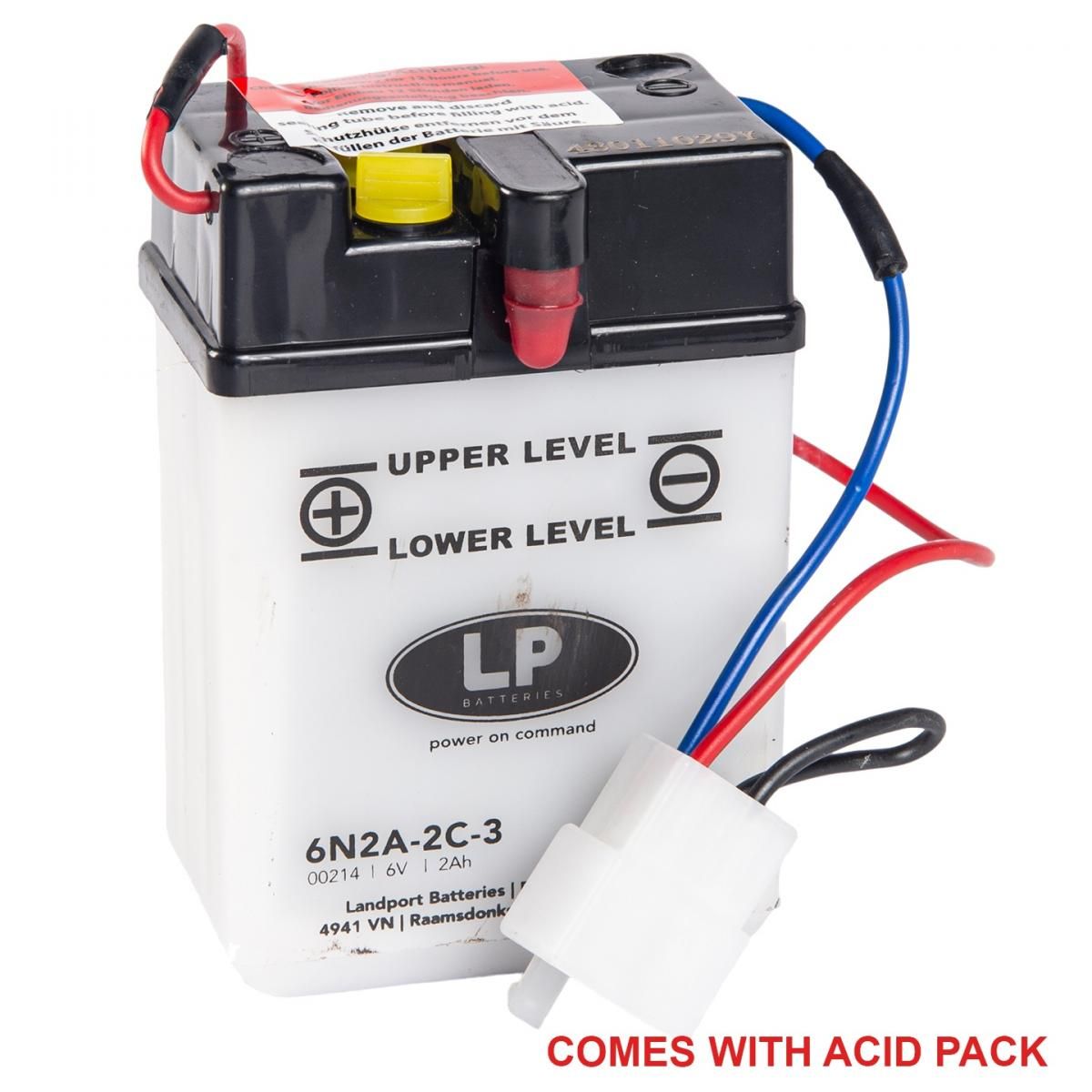 BATTERY 6N2A-2C-3 6V 2Ah WITH ACID, LANDPORT 00214 DRY, ROAD, MC MA 6N2A-2C-3