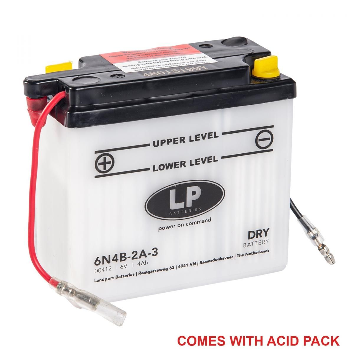 BATTERY 6N4B-2A-3 6V 4AH, LANDPORT 00412 WITH ACID PACK, ROAD, MC