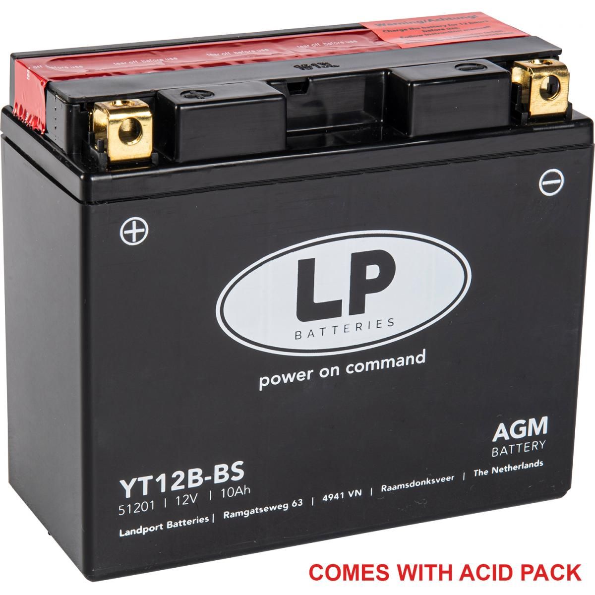 Landport AGM starter batteries are produced with absorbent glass mat technology which features extreme cranking performance, maximum starting power and vibration resistance. These batteries are dry pre-charged and include a fitting acid pack. Simply fill and charge the battery and it is ready to use. Once activated, the battery will become completely spill proof and 100% maintenance free. Landport AGM batteries are ideal for motorcycles, scooters and powersport vehicles used all year round. These are available in a range of 12V batteries from 2.3Ah to 21Ah.