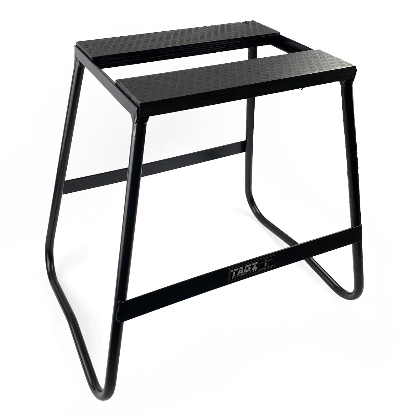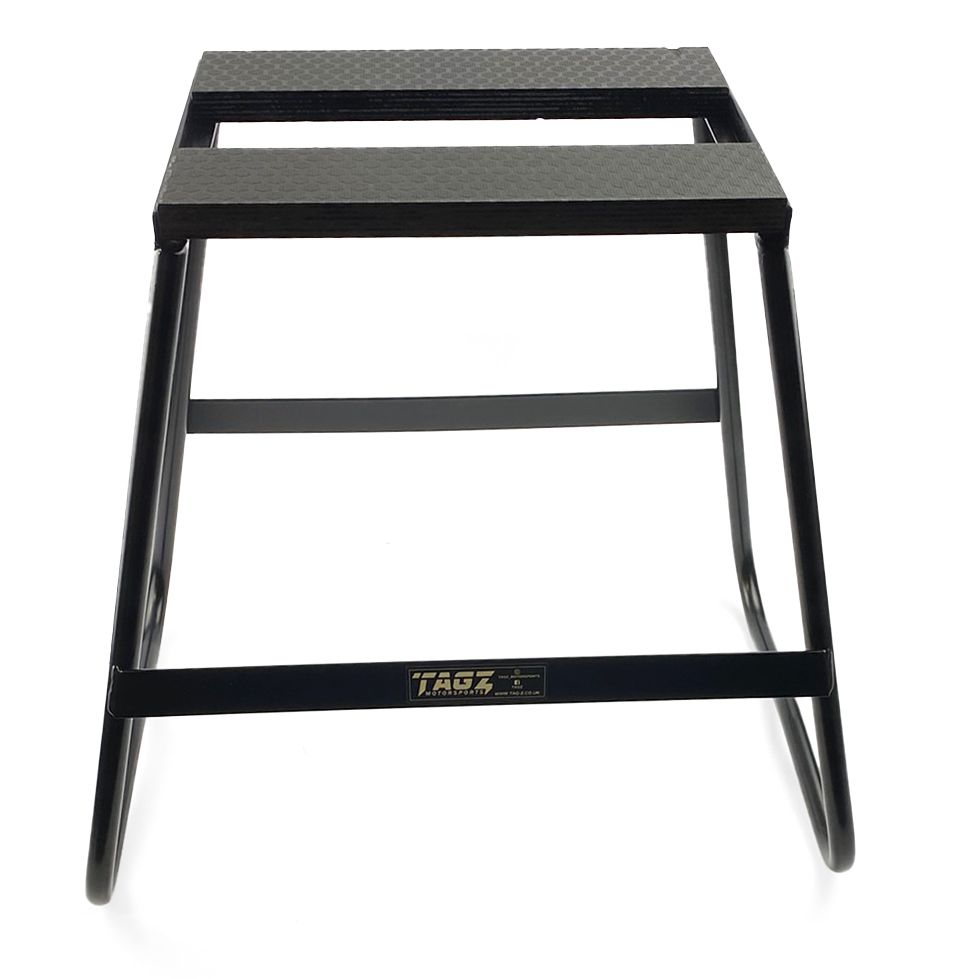 TAG-Z Bike Stand Split top. A light weight stand, constructed from high quality steel with a BLACK powder coated finish. Stand is 440mm high and features a split top for draining the oil from your bike.