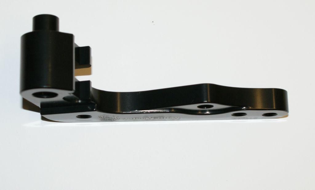 Part No. 40-434 (oro2u.com) Brackets are fully CNC machined 6082 billet aluminum and are used to relocate the stock brake caliper to the correct position in order to accommadate the oversize disc.