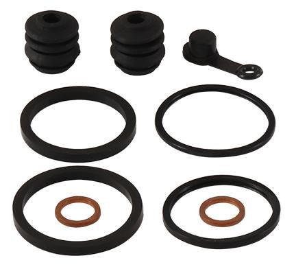 Each kit contains all rubber parts necessary to rebuild one caliper. Kit includes: Boots, seals, bleeder cap, brake pad retaining pins, and copper washers (actual contents listed when available). Note: Kit contents will vary by fitment and are subject to change.