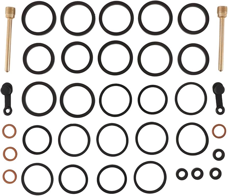 Each kit contains all rubber parts necessary to rebuild one caliper. Kit includes: Boots, seals, bleeder cap, brake pad retaining pins, and copper washers (actual contents listed when available). Note: Kit contents will vary by fitment and are subject to change.