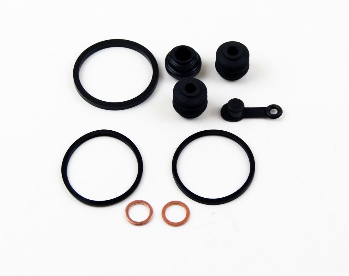 Rear brake caliper rebuild kit designed to restore the functionality of the rear brake system for Kawasaki models.
