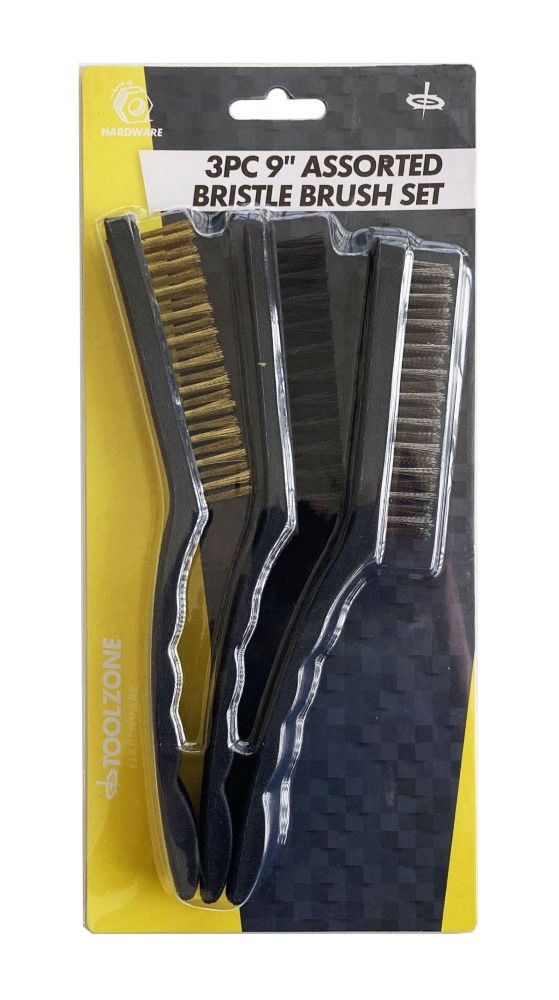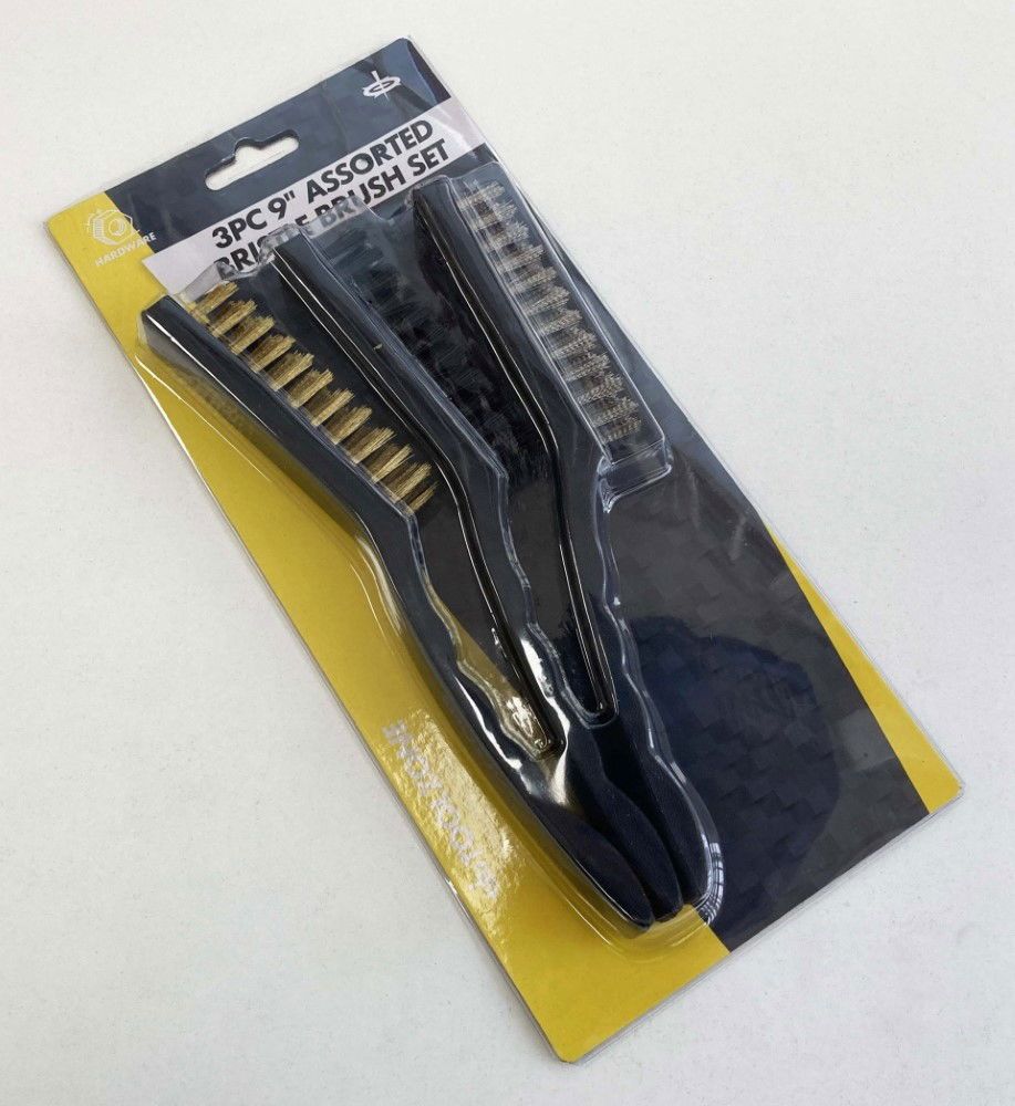 BRISTLE BRUSH SET 3PC 9″ ASSORTED BRASS NYLON STEEL – TOOLZONE KDPBR050