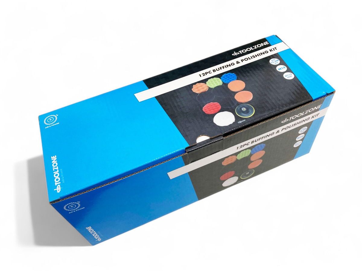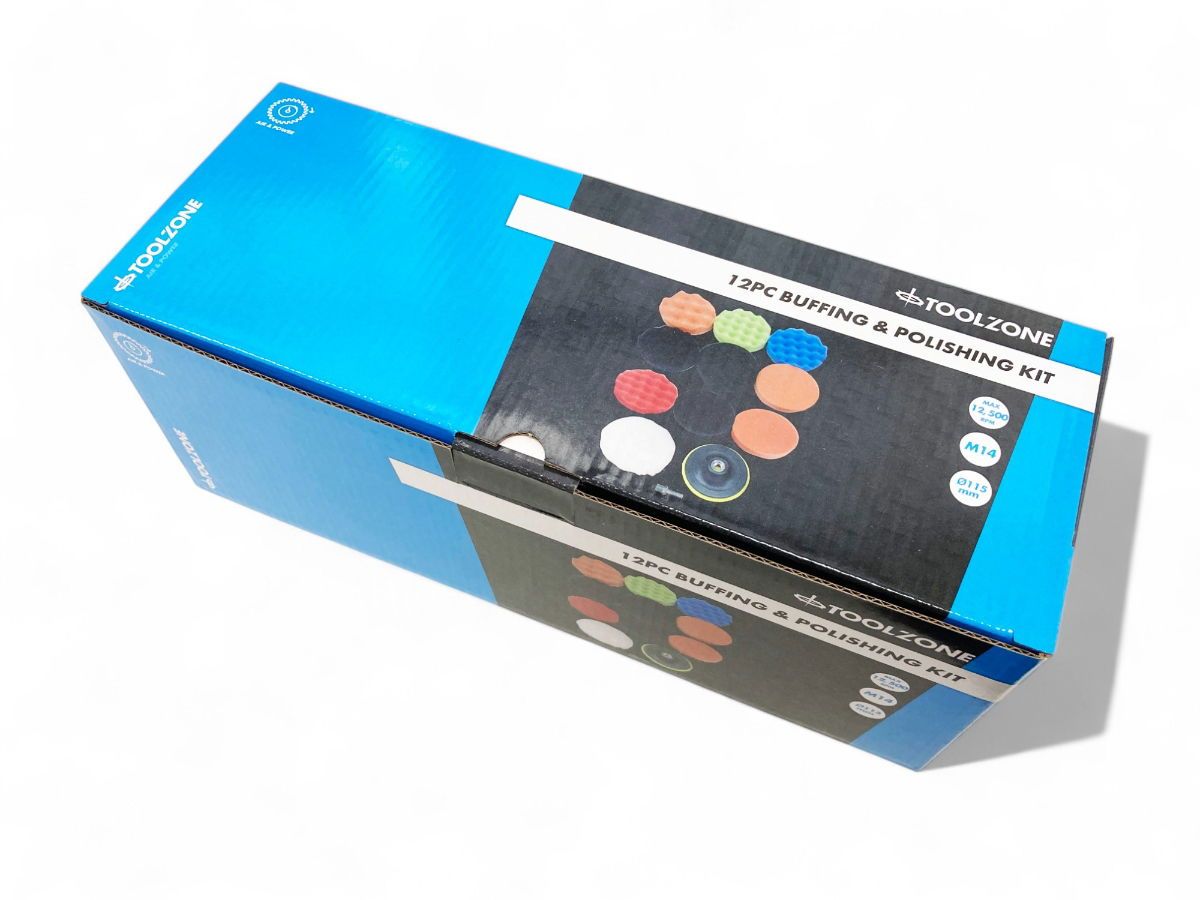 BUFFING AND POLISHING KIT 12 PIECES 115mm WITH HOOK AND LOOP ADAPTOR – TOOLZONE KDPAB172