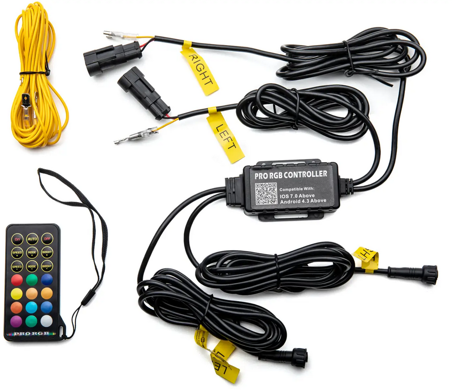 After a successful install, you can easily change the color and pulse patterns or reset them with the app on your phone or by remote. And we’ve ensured these fang lights are compatible with our turn signal kits. All you have to do is splice them into your turn signal harness.