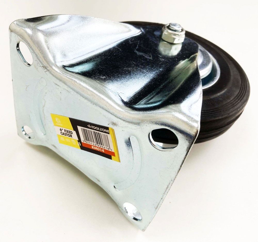 CASTOR FIXED 6″ 150mm RUBBER WHEEL STEEL PLATE 135kg – TOOLZONE KDPRM014
