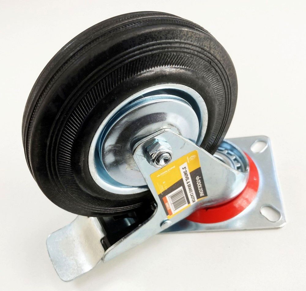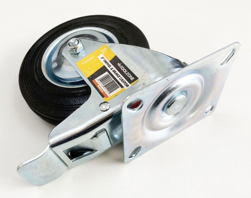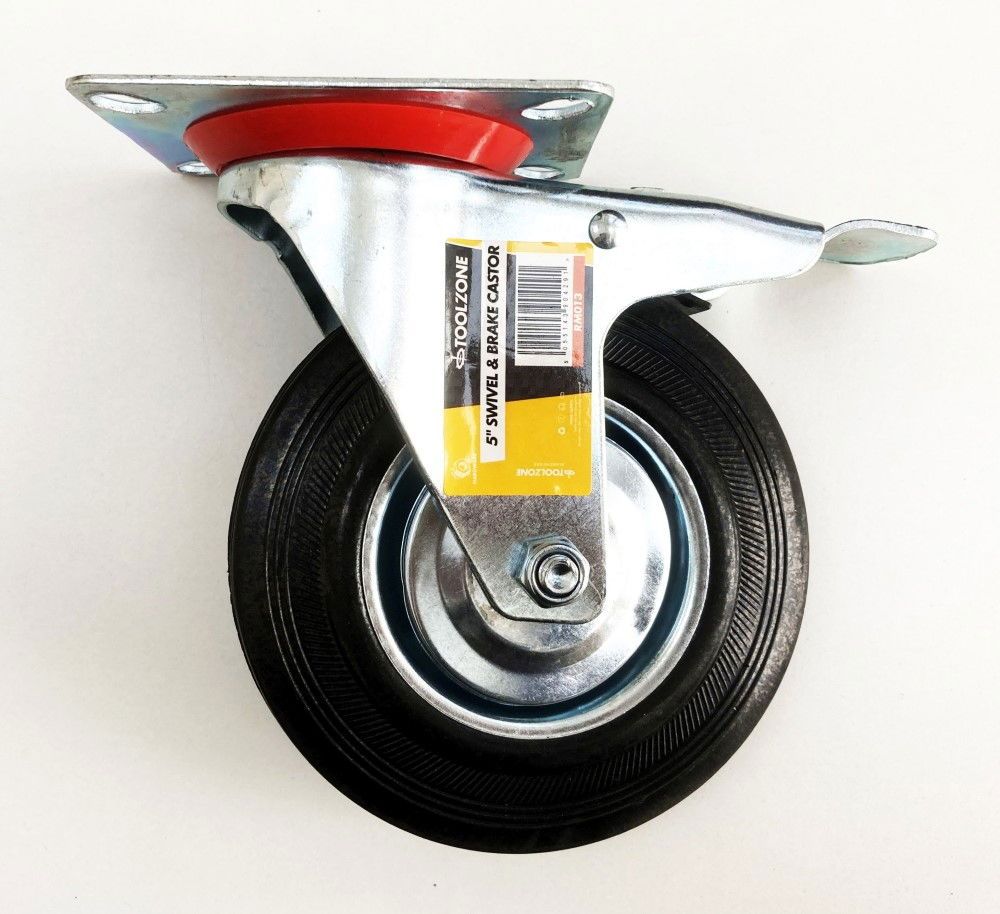 CASTOR SWIVEL WITH BRAKE 5″ 125mm RUBBER WHEEL STEEL PLATE 70kg – TOOLZONE KDPRM013