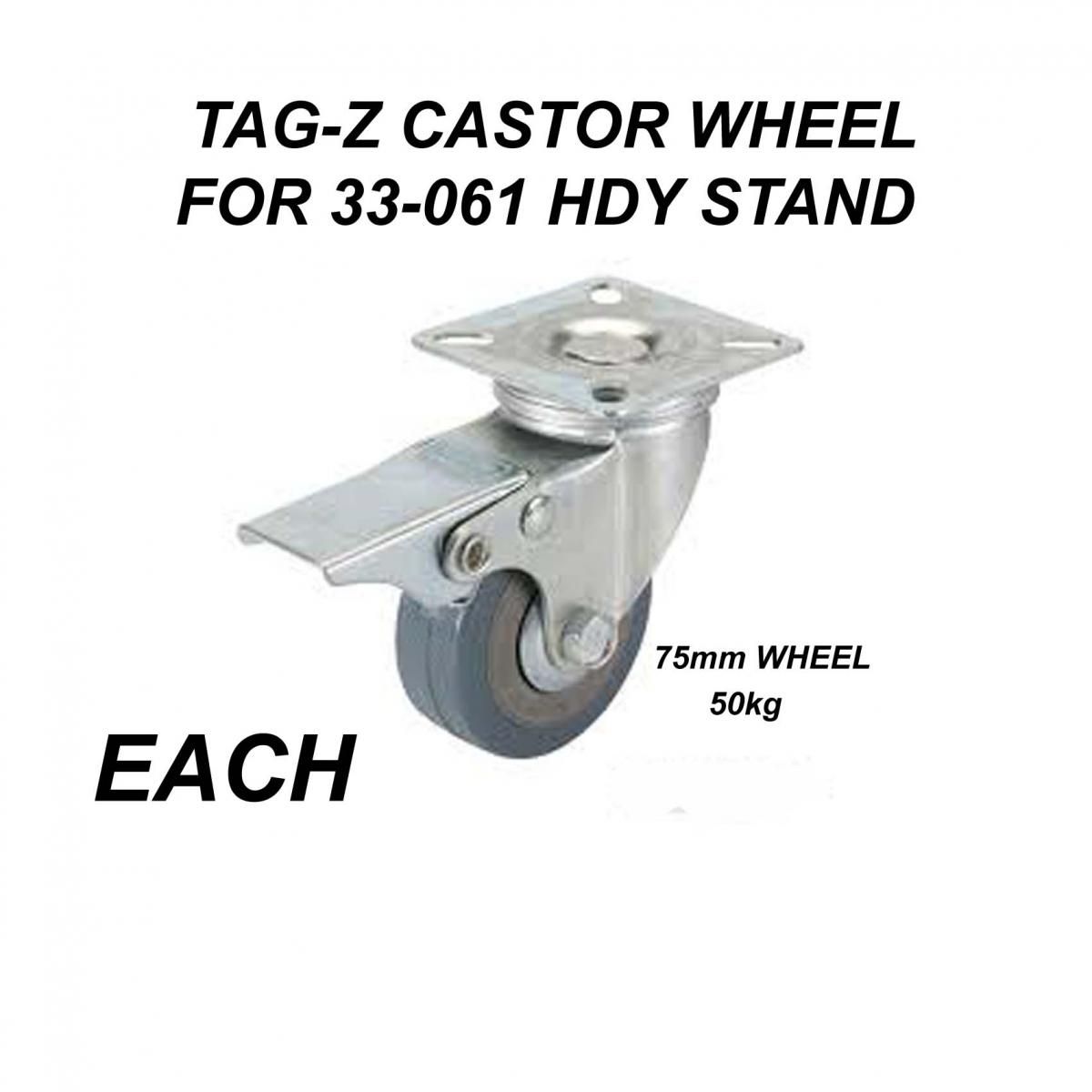 CASTOR SWIVLE WHEEL EACH 50kg, SUIT : OLD WHEEL ABOUT HYD STAND, 75MM WHEEL, SWIVEL, BRAKE