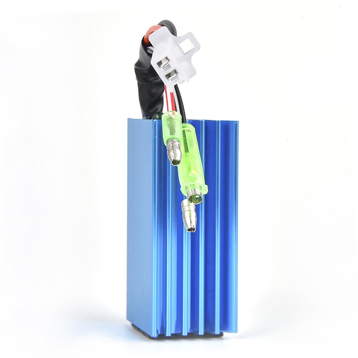 High-performance racing CDI for 50cc 2-stroke scooters equipped with Minarelli 1E40QMB and 1PE40QMB engines. Suitable for models such as Yamaha JOG, Zuma, Vino, Adly, Vento, TNG, Alpha Sport, Bombardier, and Hammerhead scooters. Please note that some models may require rewiring; ensure technical expertise before purchasing as this is not a plug-and-play unit.