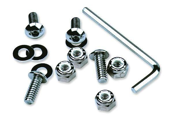 This chrome bolt set is designed to enhance the appearance of your license plate frame with durable and stylish hardware. The set includes four chrome-plated bolts, each with a thread size of 1/4″-20, providing a secure fit for standard license plate installations.