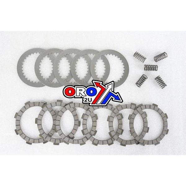 EBCs number 1 selling product for motocross sport use, the DRC full kit includes heavy-duty aluminum impregnated cork based plates, 10% upgrade clutch springs and steel intermediate driven plates. The steel intermediate plates outlast stock alloy units and prevent muddying of the oil,