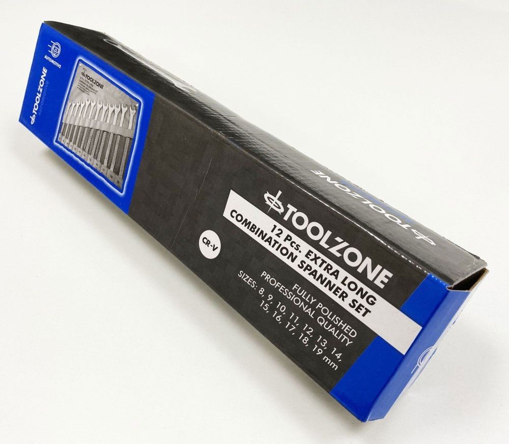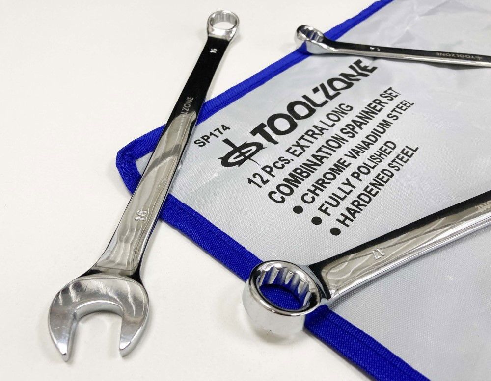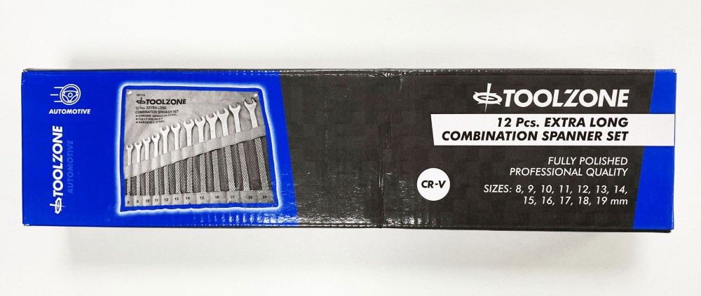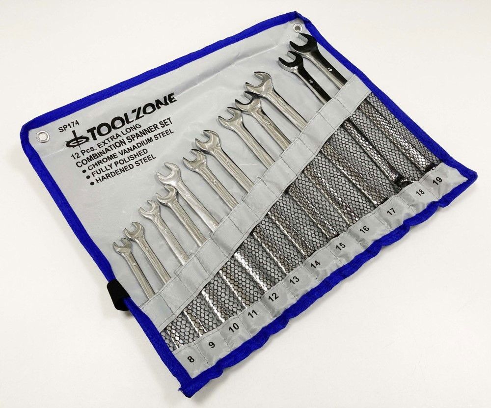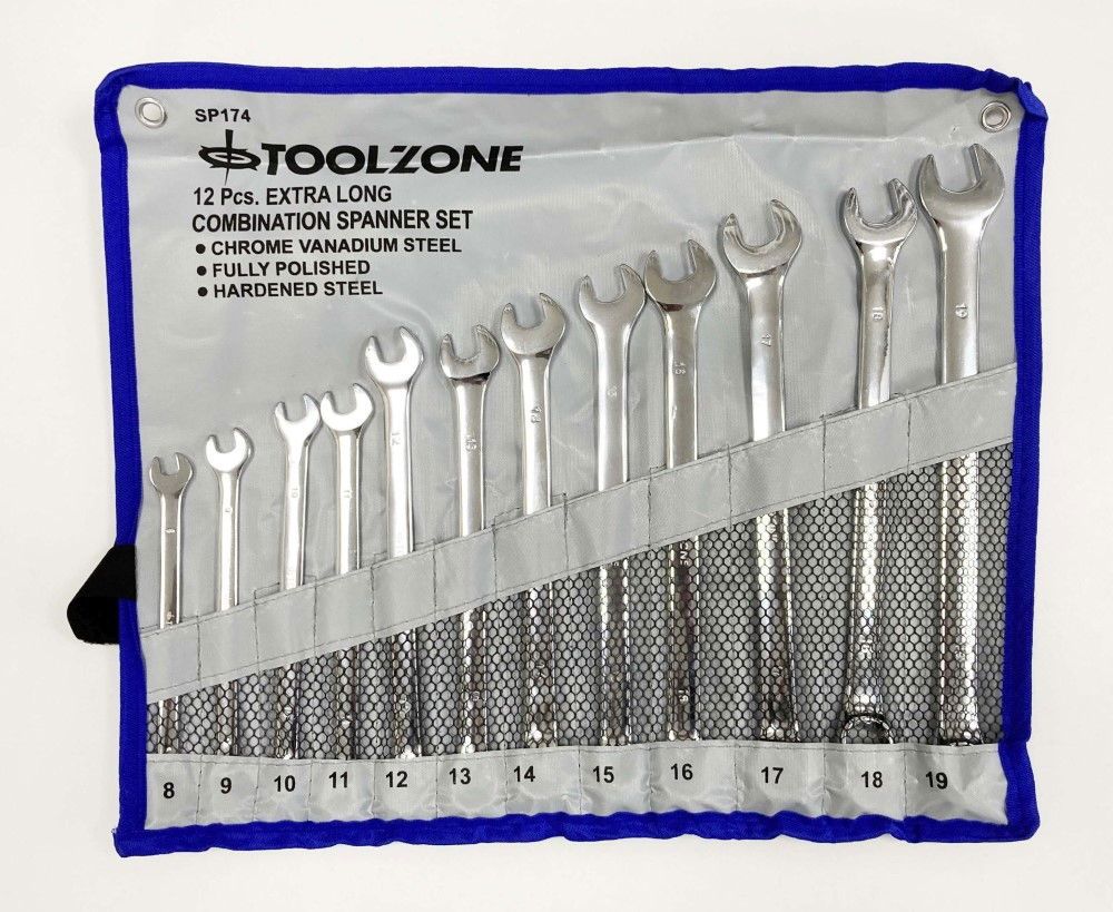 COMBINATION SPANNER SET 12pc EXTRA LONG 8-19mm CHROME VANADIUM IN POUCH – TOOLZONE KDPSP174