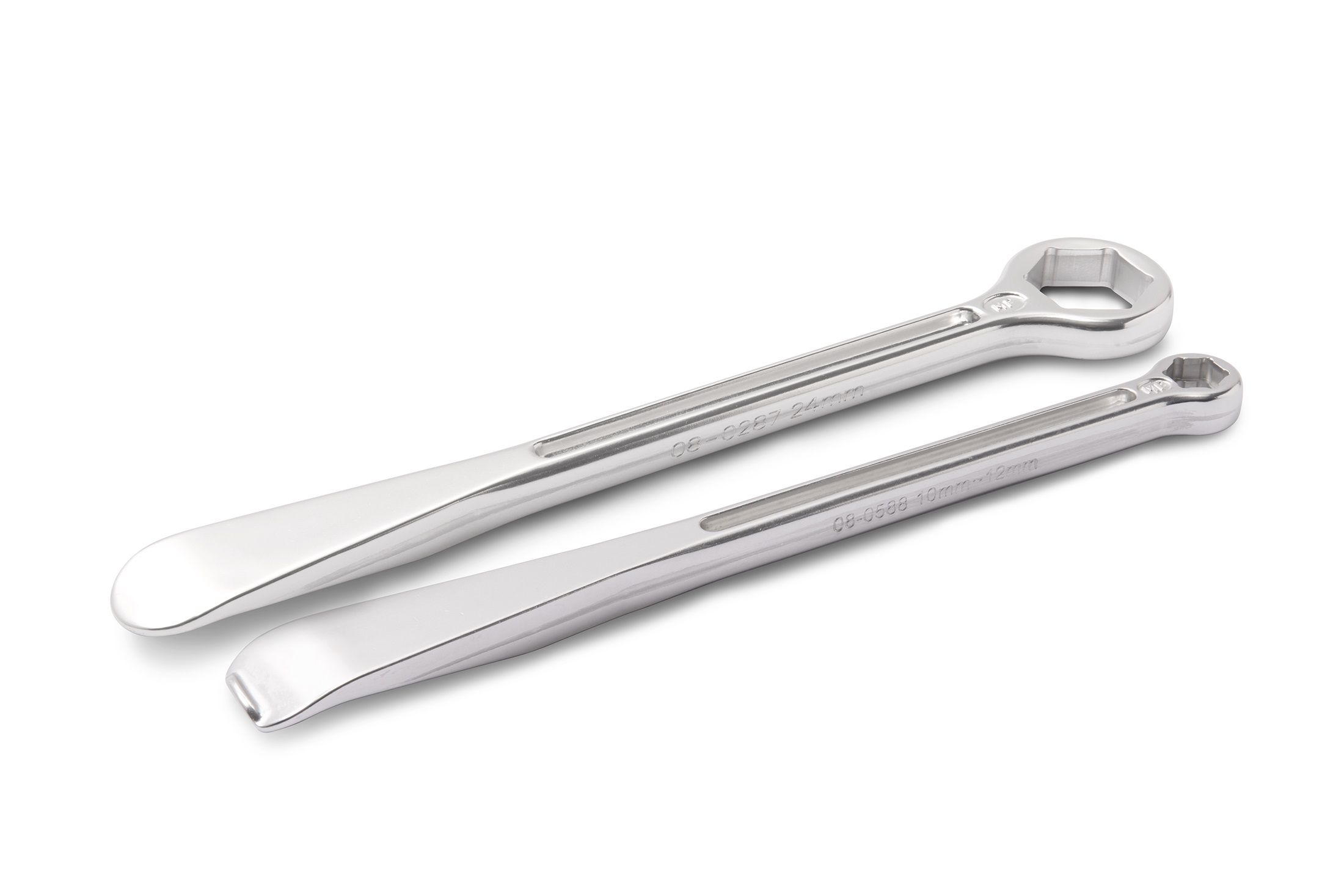 - One lever includes a stepped 10/12 mm box-end wrench for rim lock nuts.