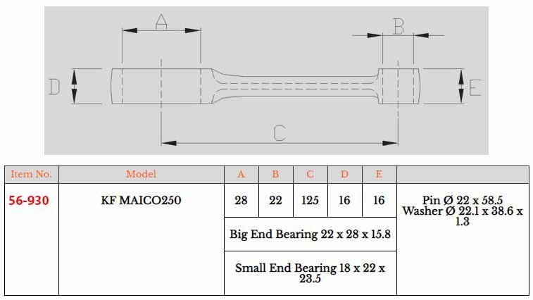 CONNECTING ROD KIT MAICO 250, RO-8208 125-18-22-16-16-58.5mm, NAMURA RX-12001, MX-09066