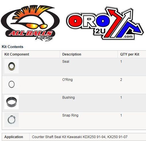 COUNTER SHAFT SEAL KIT KX250, ALLBALLS 25-4015 KDX250