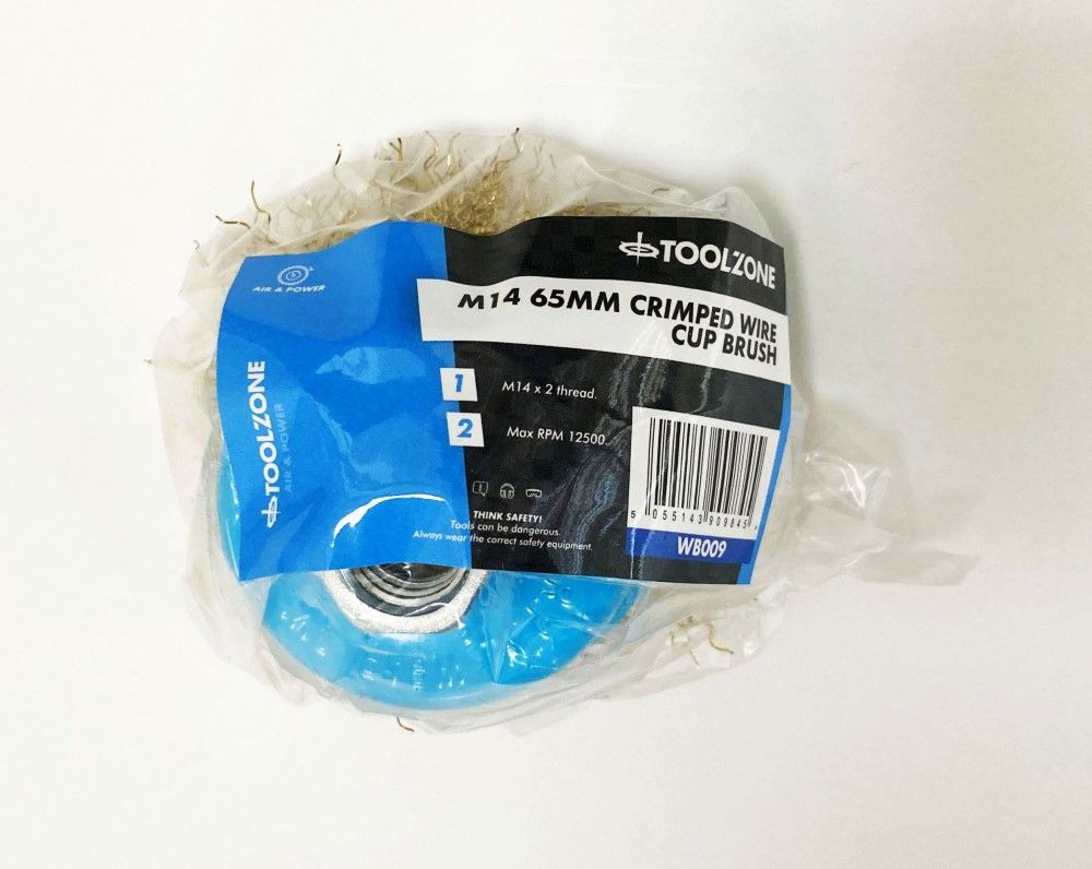 CRIMPED WIRE CUP BRUSH 65mm M14 THREAD – TOOLZONE KDPWB009
