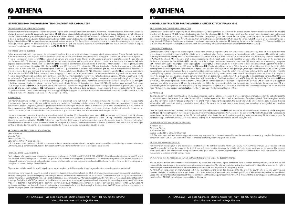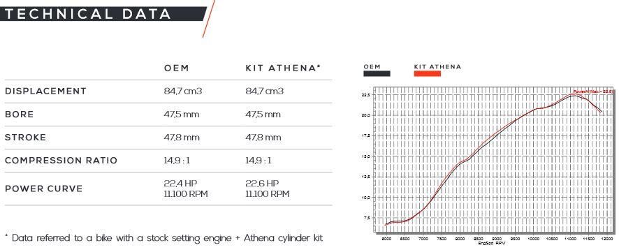 All the components of the kit have been developed to withstand the highest temperatures, pressures and stresses and have been validated by Athena technicians with severe bench and road tests.