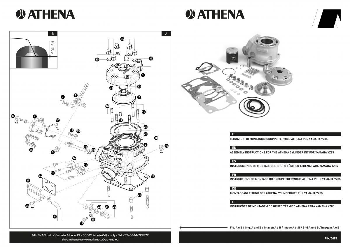 CYLINDER FULL KIT 47.5mm YAMAHA YZ 85 19-25, ATHENA P400485100076 STD BORE, (Piston included)