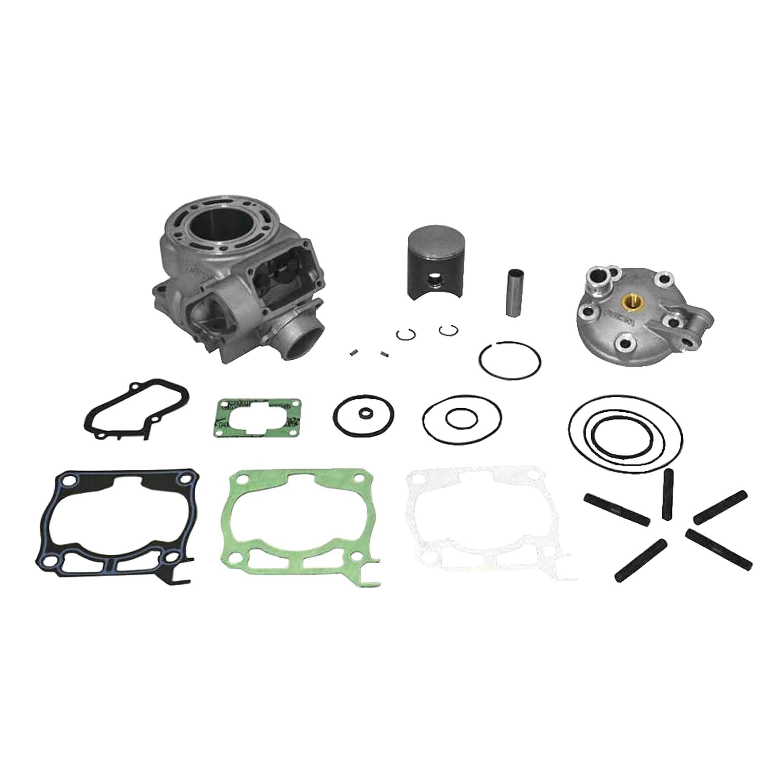 The kit includes the high-quality aluminum cylinder with standard bore, the cylinder head, the complete piston with the piston pin and rings, and all the necessary gaskets.