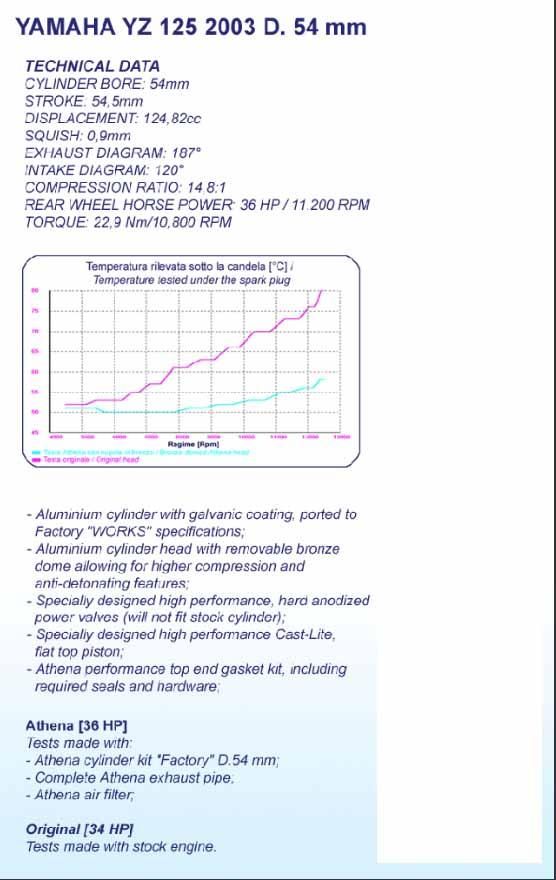 CYLINDER FULL KIT 54MM YAMAHA YZ 125 97-04, ATHENA P400485100003 STD BORE, (Piston Included)