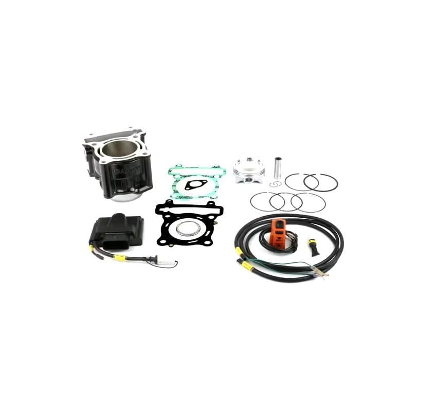 The kit includes the complete piston with the piston pin and rings, all the necessary gaskets and increased bore aluminum cylinder with CNC machining to grant tolerances of a hundredth of a millimeter during the whole production process.