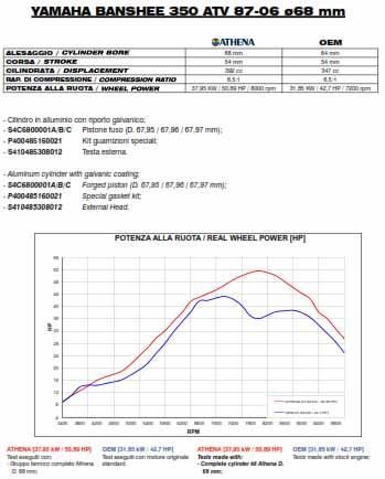 CYLINDER FULL KIT 68MM YAMAHA YFZ 350 87-06, ATHENA P400485100024 392CC BIG BORE, (Pistons included)