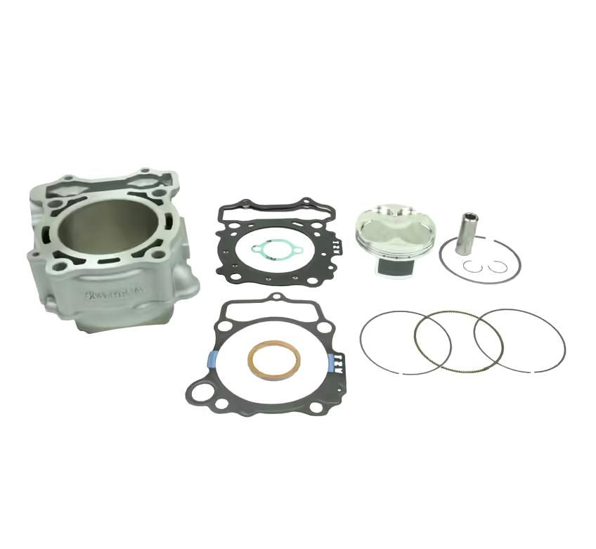 The kit includes the high-quality aluminum cylinder with standard bore, the complete piston with the piston pin and rings, and all the necessary gaskets.