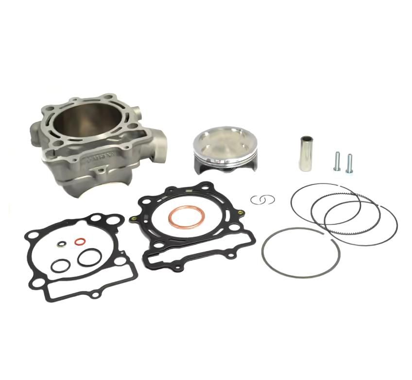 This kit comprises a high-quality aluminium cylinder with an increased bore, a complete piston including the piston pin and rings, along with all necessary gaskets. Each kit component is engineered to withstand extreme temperatures, pressures, and stresses, validated through rigorous bench and road tests by Athena technicians.