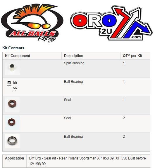 - ALLBALLS differential bearing kits include everything needed to restore your machine to like-new condition.