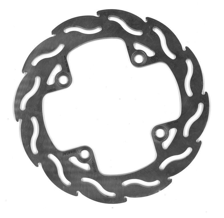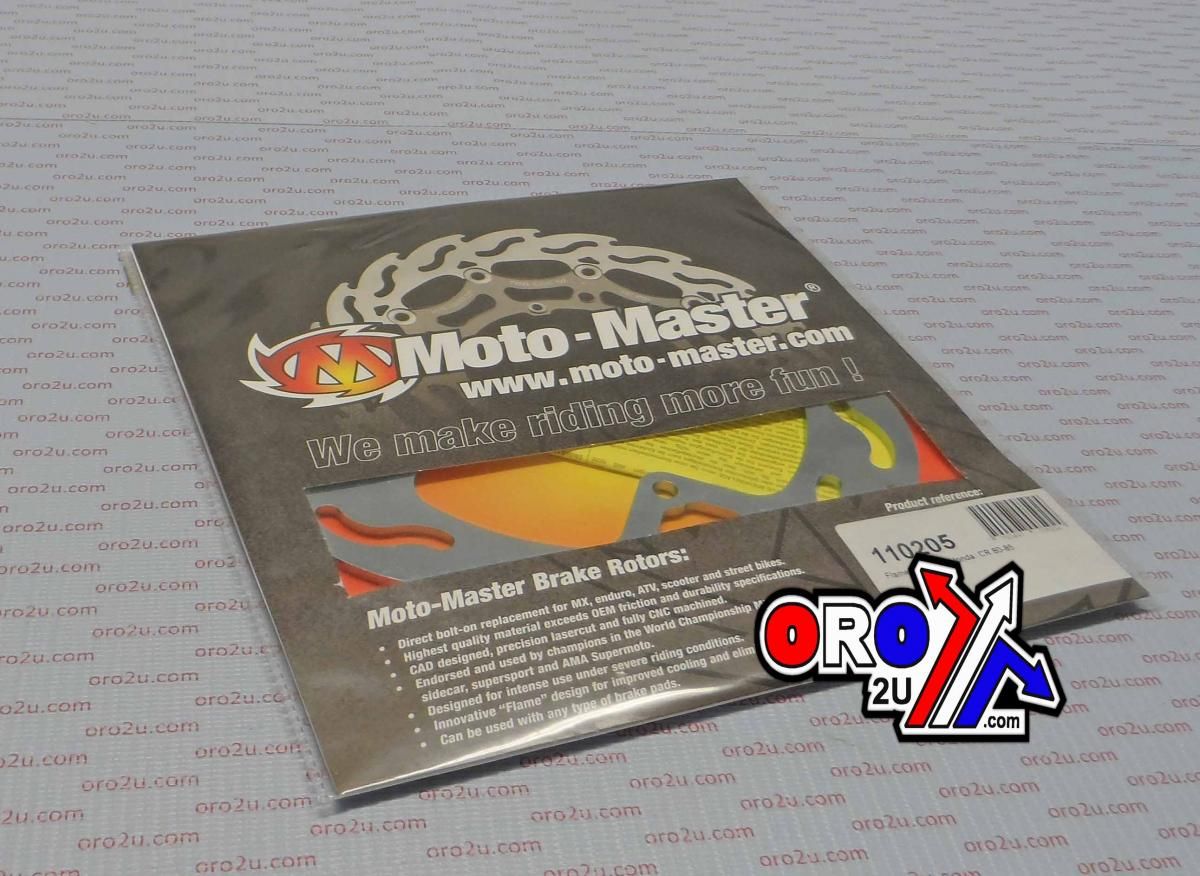 surface machined for perfect fitment and flatness. Also, by integrating our Flame design into the disc, cooling and cleaning of the contact surface is much improved. For best performance we recommend using Moto-Master brake pads with the matching pad compound that best suits your type of riding.