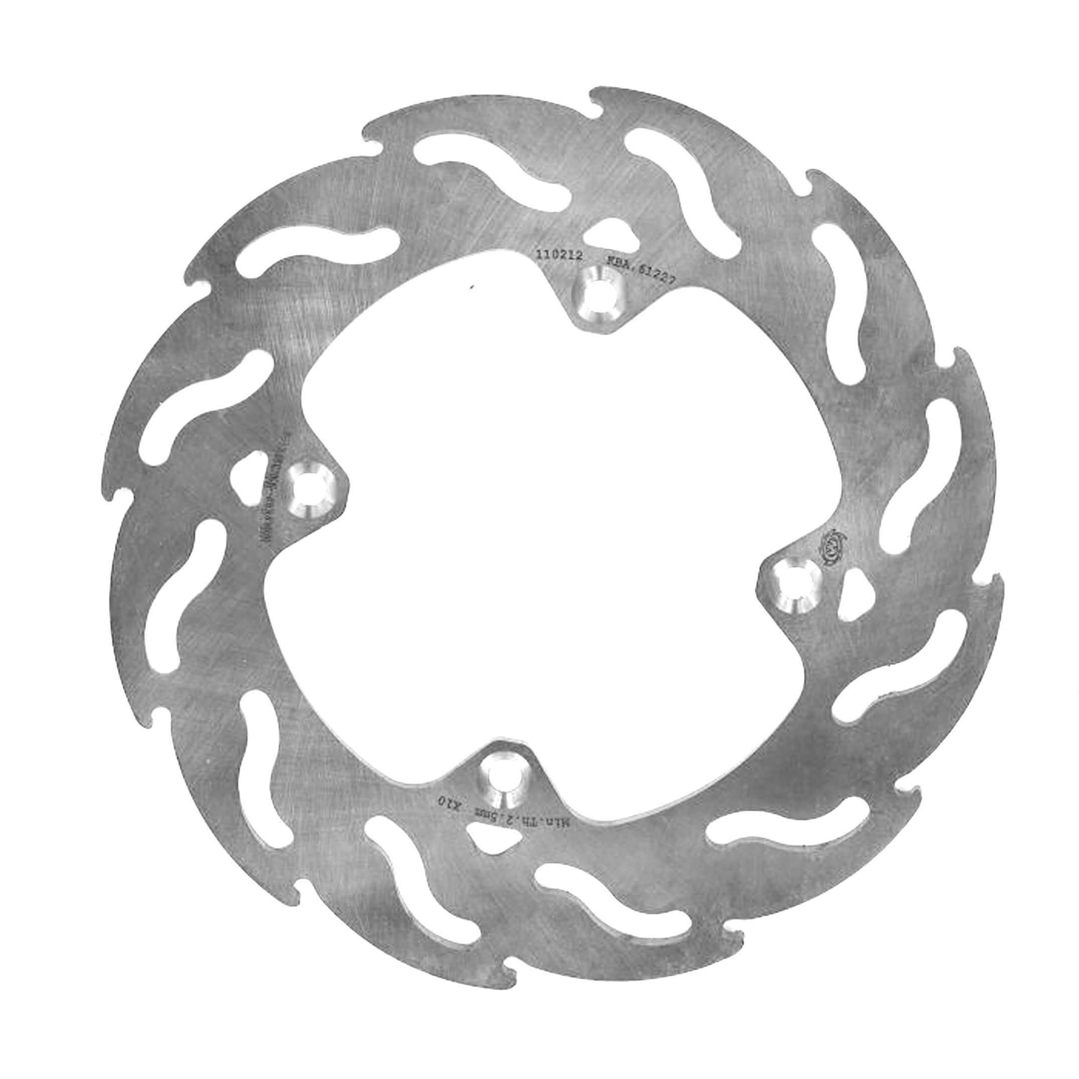 for high-performance braking while exhibiting extremely little wear. All discs are lasercut, CNC drilled, and surface machined for perfect fitment and flatness. Also, by integrating our Flame design into the disc, cooling and cleaning of the contact surface is much improved. For best performance we recommend using Moto-Master brake pads with the matching pad compound that best suits your type of riding.