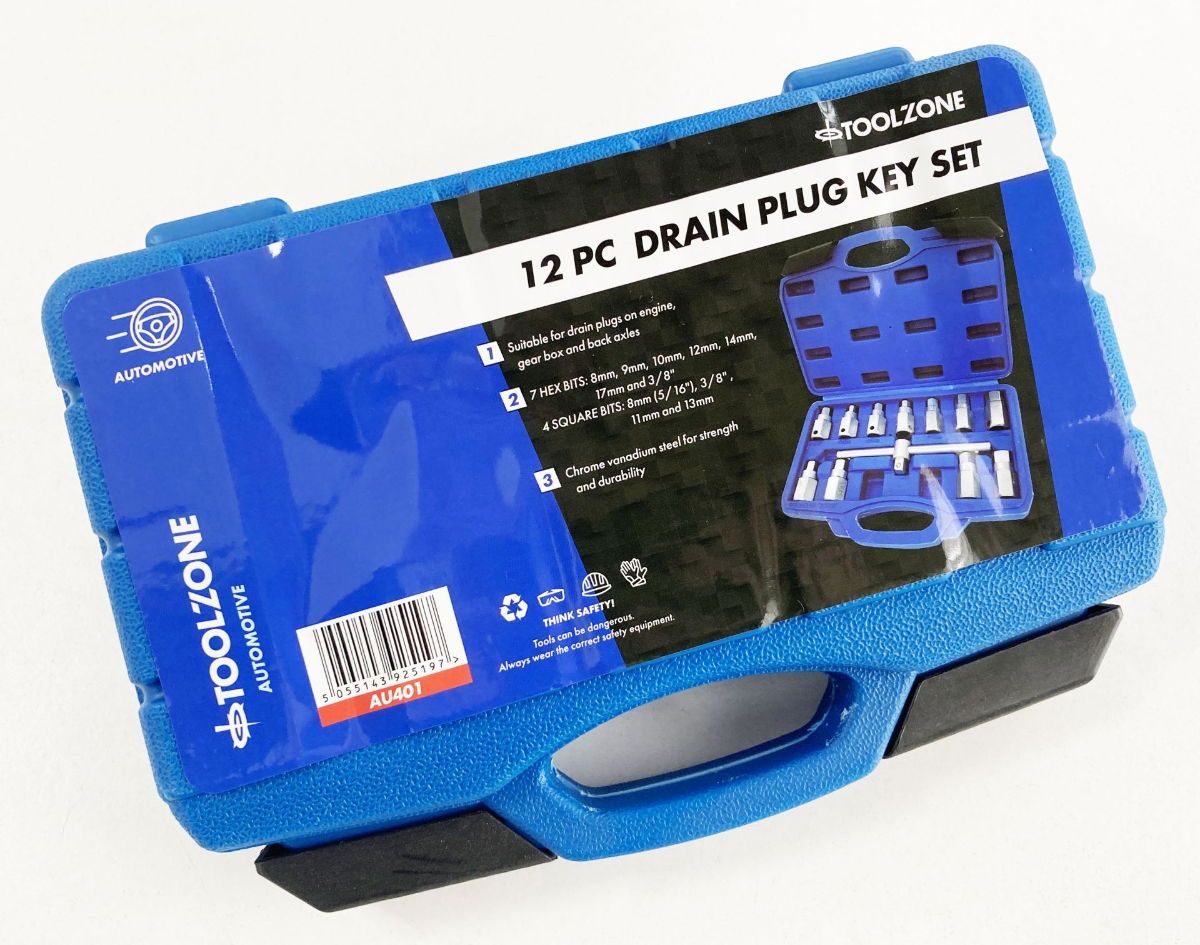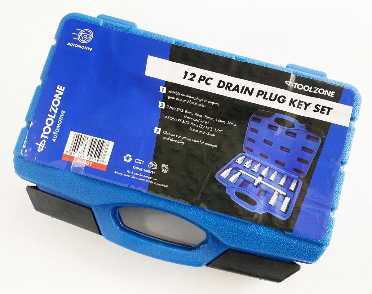 DRAIN PLUG KEY SET 12pc HEX AND SQUARE BITS – TOOLZONE KDPAU401